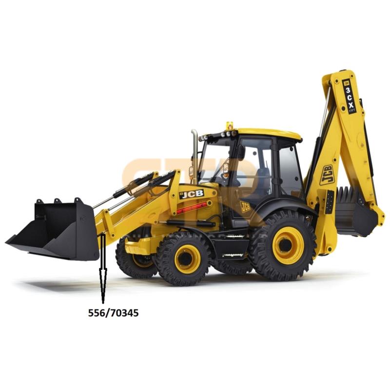 The product with part number 556/70345 is a hydraulic jaw cylinder barrel (tube) manufactured to Original/OEM standards, designed for the 6-in-1 bucket of JCB 3CX, 4CX backhoe loaders, and various Telehandler models.
