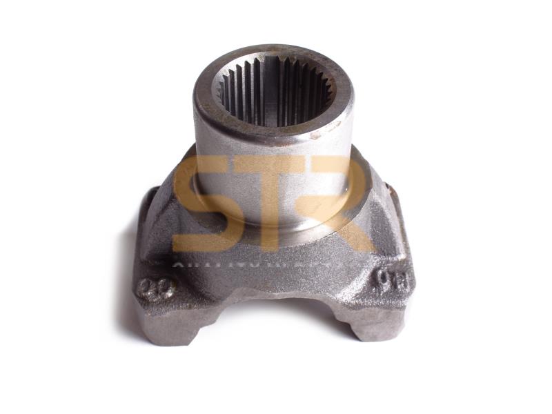 A flange is a flat part with holes for bolts or studs, serving for the strong connection of shafts and other rotating parts. This flange specifically forms the connection point that connects the transmission's rear output shaft to the cardan shaft, ensuring reliable torque transfer.