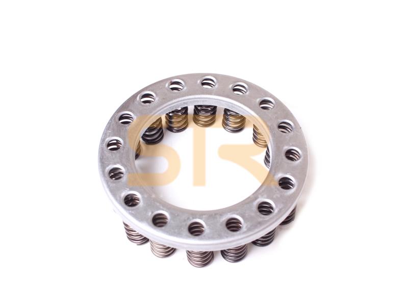 The spring pack (block) is designed to return the transmission's gear engagement clutch piston to its initial position. This action leads to the disengagement of the clutch friction discs and the shifting out of gear. It plays a critical role in enabling smooth and quick gear shifts within the transmission.