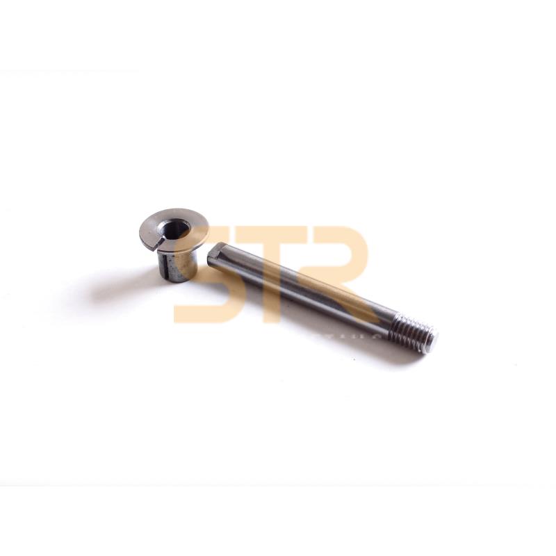 Brake disc guide kit. Includes pin, bushing, and spring. This complete set ensures the correct movement and precise positioning of the brake disc within the caliper, improving the efficiency and reliability of braking.